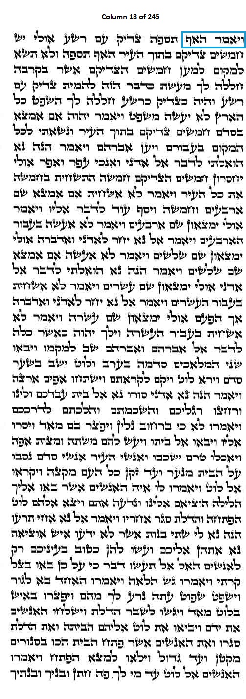 Column 18 of the Torah Scroll begins with the following distinct Line 1 Keywords; this is the only column in the entire Scroll that begins with these keywords: