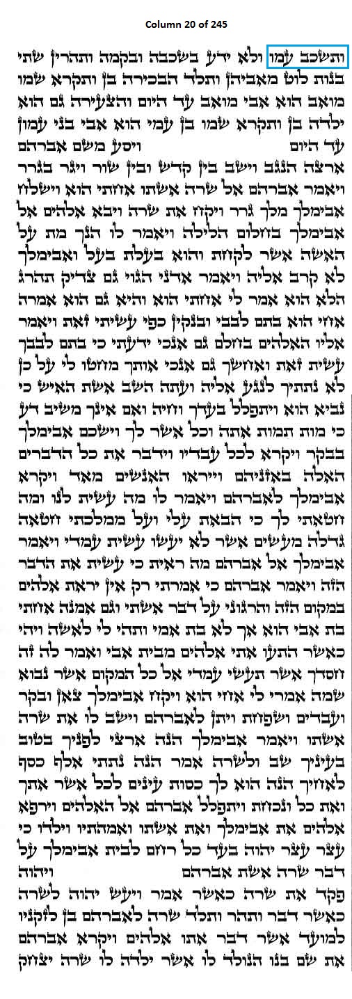 Column 20 of the Torah Scroll begins with the following distinct Line 1 Keywords; this is the only column in the entire Scroll that begins with these keywords: