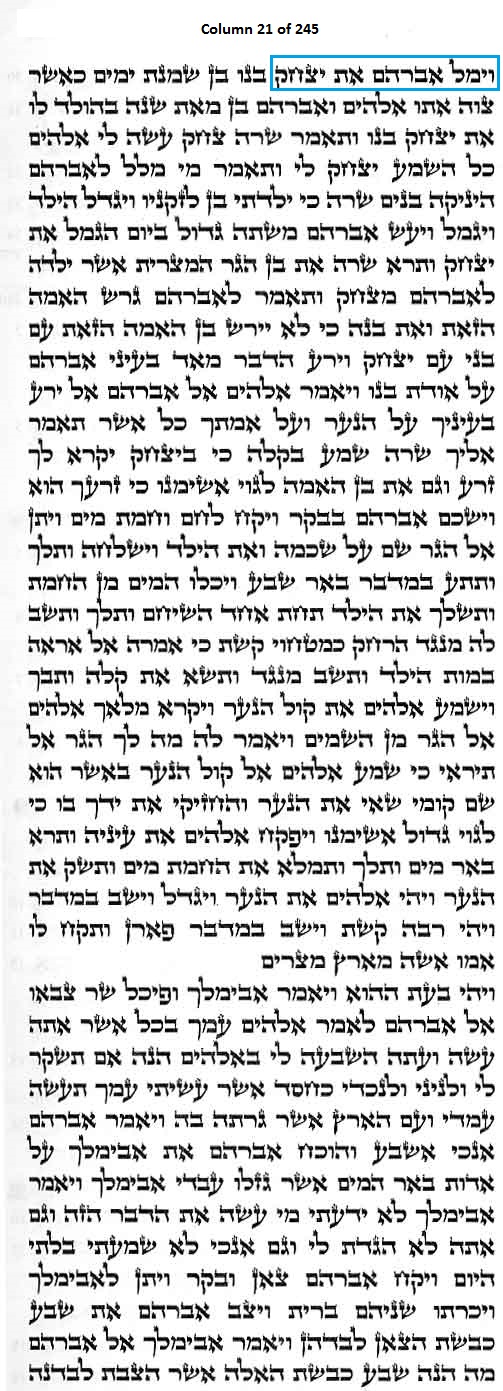 Column Contents include readings from Genesis for Parsha Vayeira: