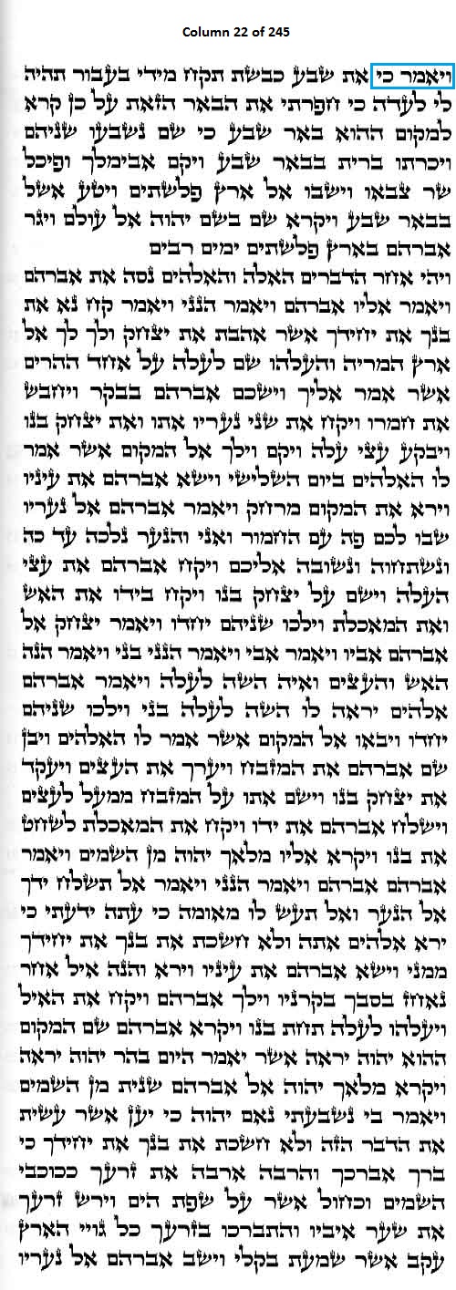 Column 22 of the Torah Scroll begins with the following distinct Line 1 Keywords; this is the only column in the entire Scroll that begins with these keywords: