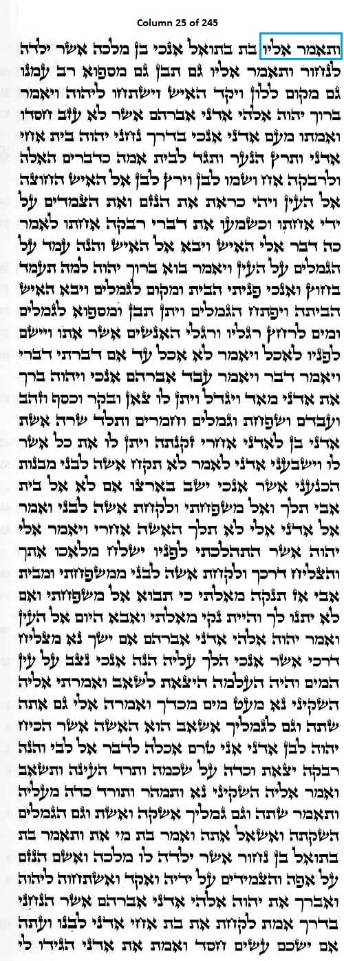 Column 25 of the Torah Scroll begins with the following distinct Line 1 Keywords; this is the only column in the entire Scroll that begins with these keywords: