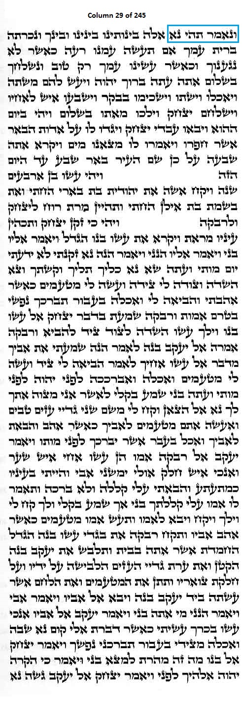 Column 29 of the Torah Scroll begins with the following distinct Line 1 Keywords; this is the only column in the entire Scroll that begins with these keywords: