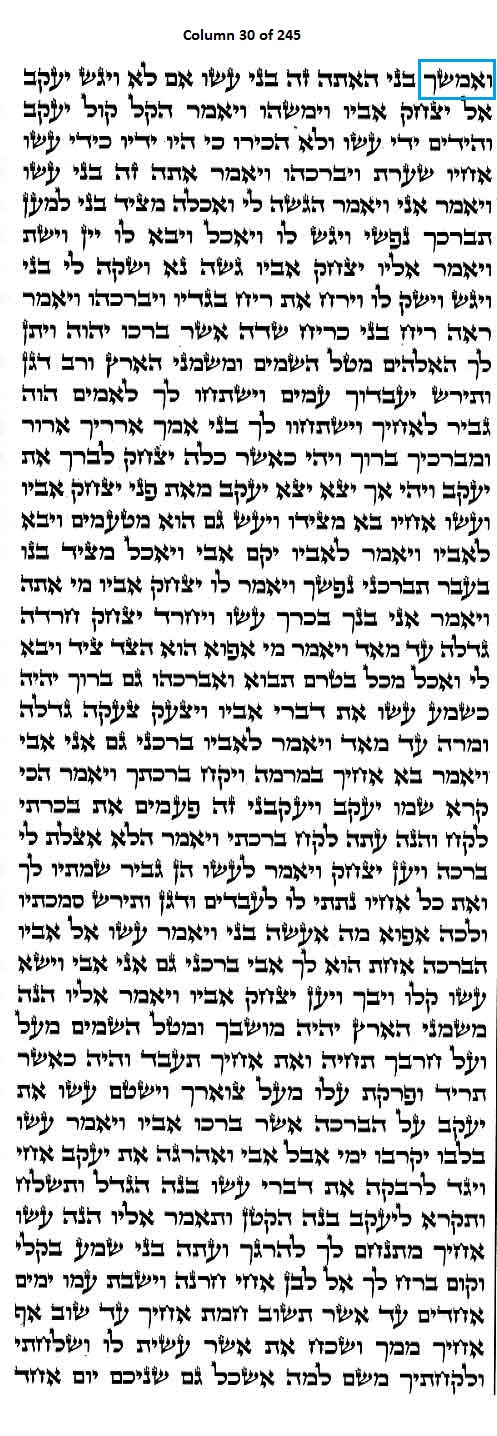 Column 30 of the Torah Scroll begins with the following distinct Line 1 Keyword; this is the only column in the entire Scroll that begins with this keyword: