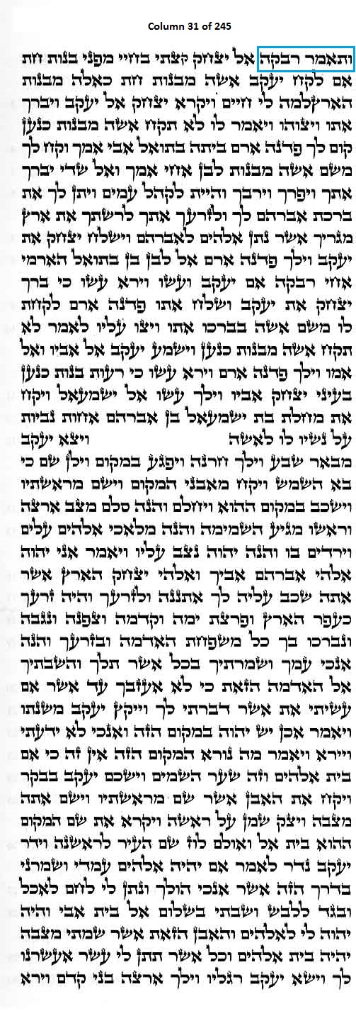 Column Contents include readings from Genesis for Parsha Toledot and for Parsha Vayetze: