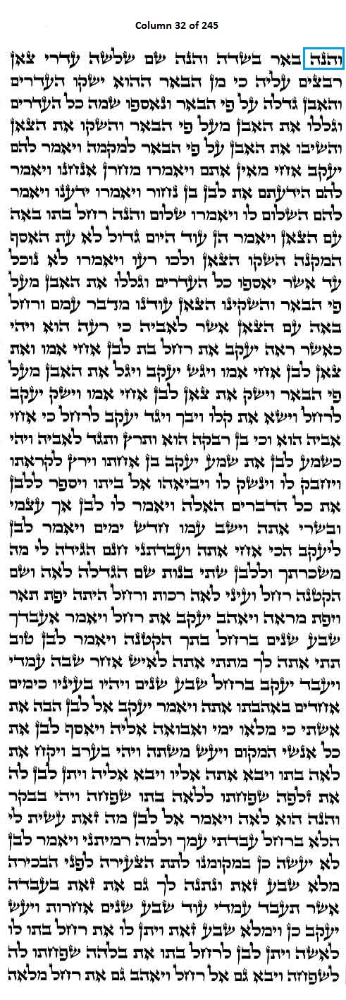 Column 32 of the Torah Scroll begins with the following distinct Line 1 Keyword; this is the only column in the entire Scroll that begins with this keyword: