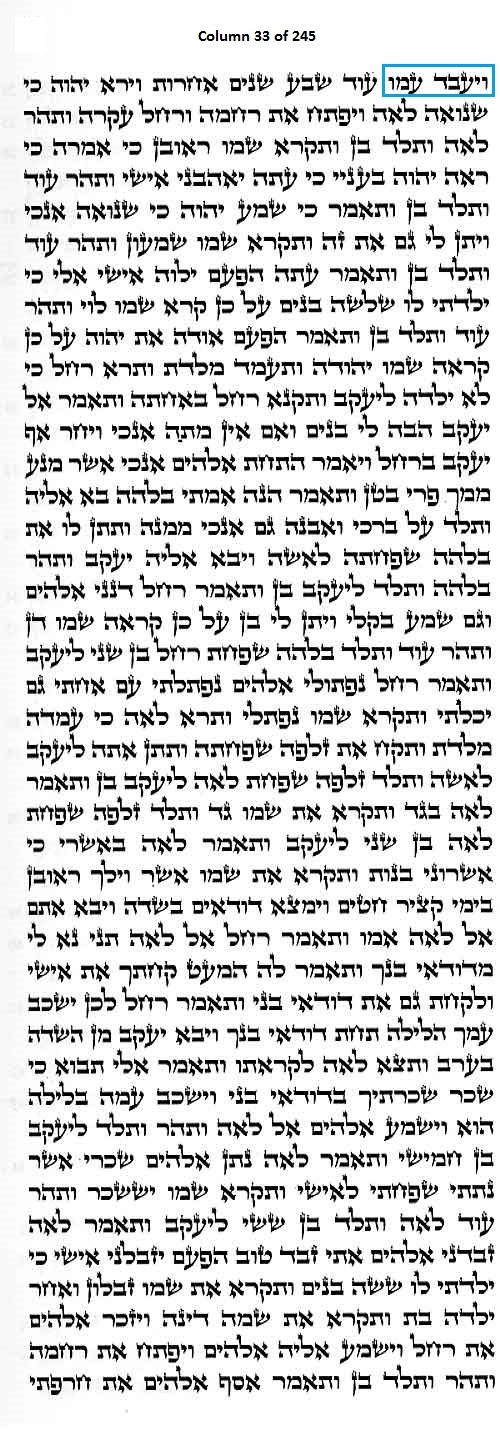 Column 33 of the Torah Scroll begins with the following distinct Line 1 Keywords; this is the only column in the entire Scroll that begins with these keywords: