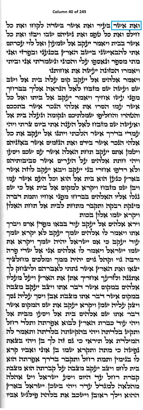 Column 40 of the Torah Scroll begins with the following distinct Line 1 Keywords; this is the only column in the entire Scroll that begins with these keywords: