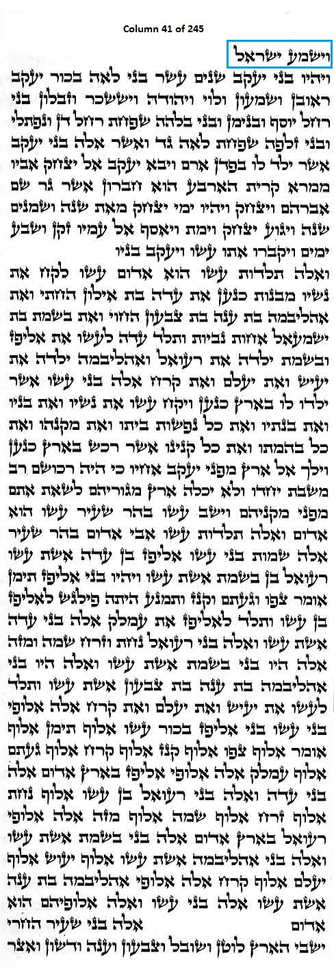 Column 41 of the Torah Scroll begins with the following distinct Line 1 Keywords; this is the only column in the entire Scroll that begins with these keywords: