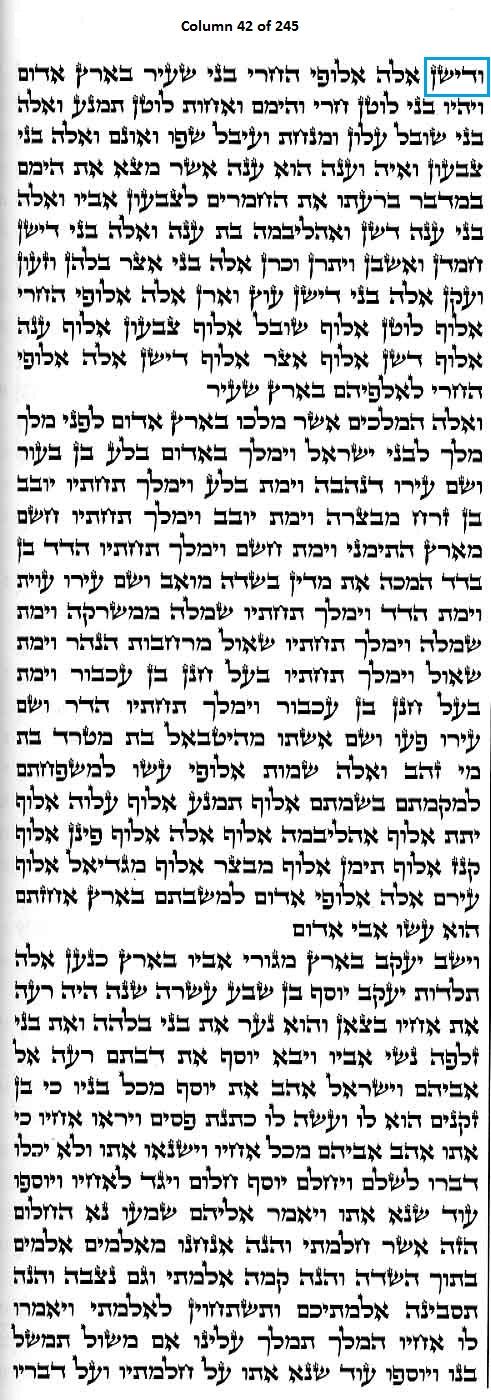 Column 42 of the Torah Scroll begins with the following distinct Line 1 Keyword; this is the only column in the entire Scroll that begins with this keyword: