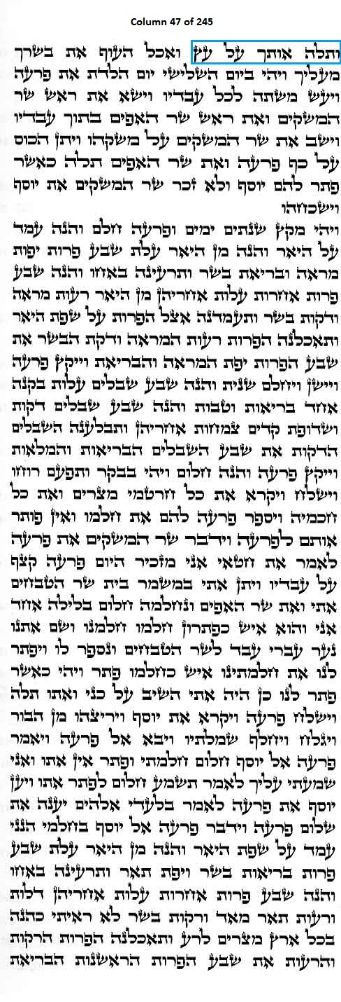Column 47 of the Torah Scroll begins with the following distinct Line 1 Keywords; this is the only column in the entire Scroll that begins with these keywords: