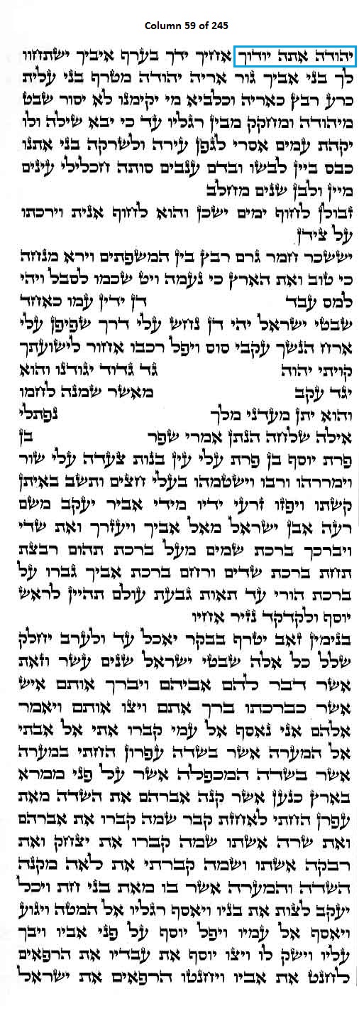 Column 59 of the Torah Scroll begins with the following distinct Line 1 Keywords; this is the only column in the entire Scroll that begins with these keywords:
