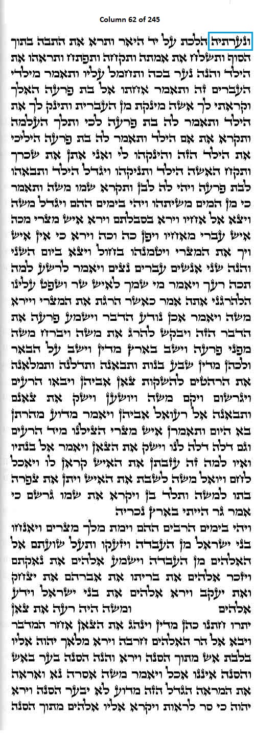Column 62 of the Torah Scroll begins with the following distinct Line 1 Keyword; this is the only column in the entire Scroll that begins with this keyword: