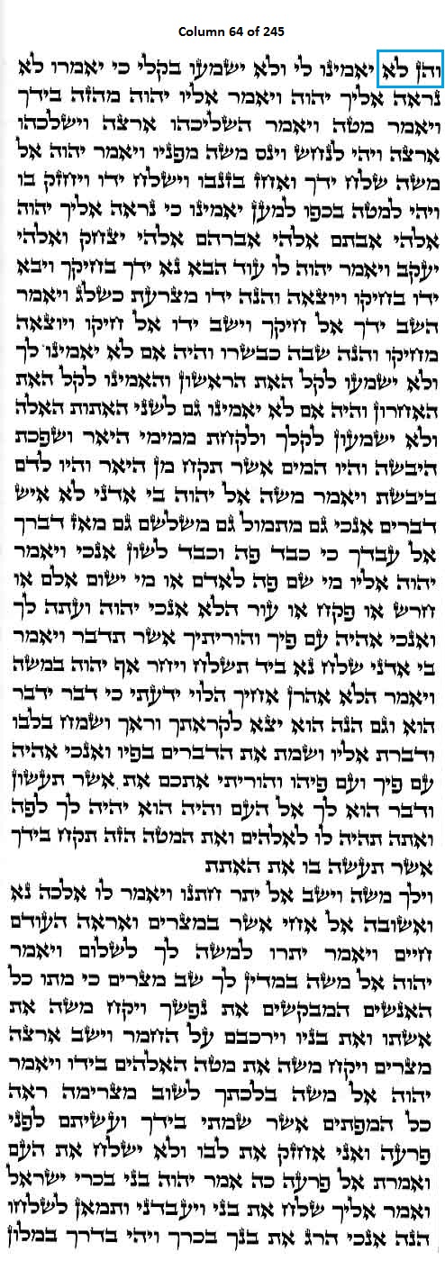 Column 64 of the Torah Scroll begins with the following distinct Line 1 Keywords; this is the only column in the entire Scroll that begins with these keywords: