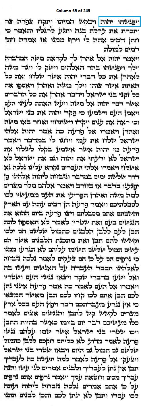 Column 65 of the Torah Scroll begins with the following distinct Line 1 Keywords; this is the only column in the entire Scroll that begins with these keywords:
