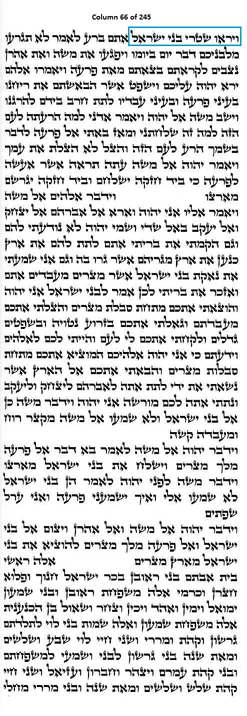 Column 66 of the Torah Scroll begins with the following distinct Line 1 Keywords; this is the only column in the entire Scroll that begins with these keywords: