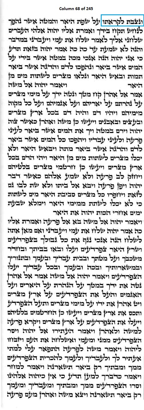 Column Contents include readings from Exodus for Parsha Va'eira: