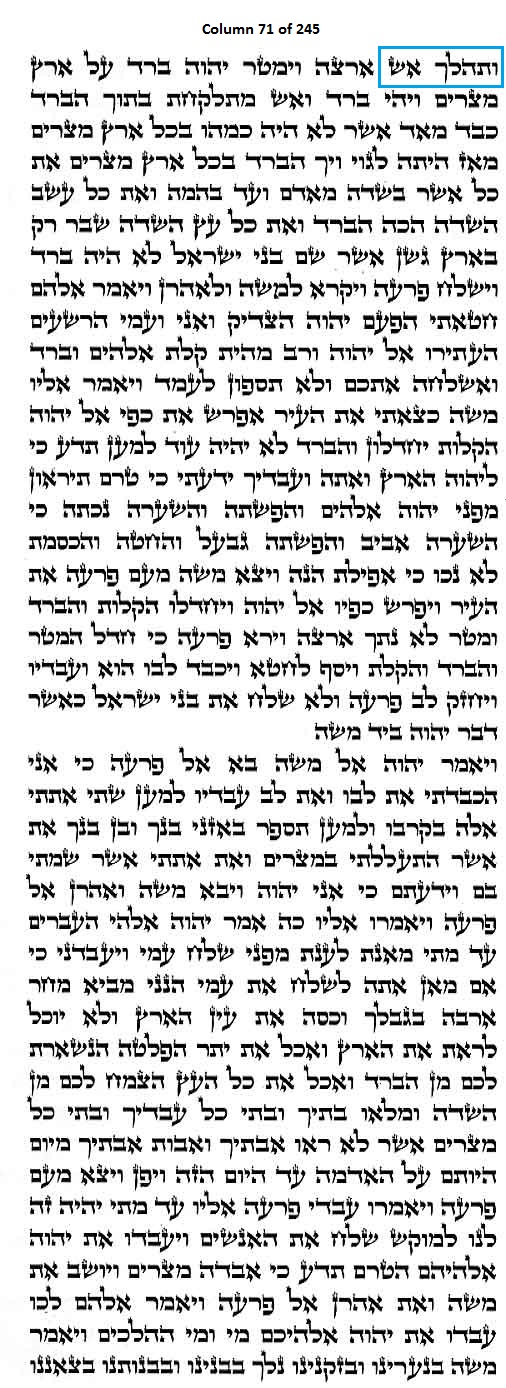 Column Contents include readings from Exodus for Parsha Va'eira and for Parsha Bo: