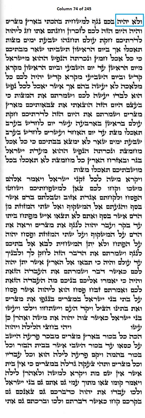 Column 74 of the Torah Scroll begins with the following distinct Line 1 Keywords; this is the only column in the entire Scroll that begins with these keywords: