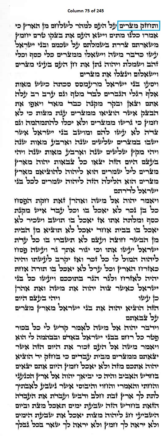 Column 75 of the Torah Scroll begins with the following distinct Line 1 Keywords; this is the only column in the entire Scroll that begins with these keywords:
