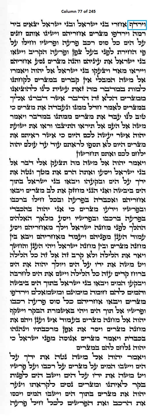 Column 77 of the Torah Scroll begins with the following distinct Line 1 Keyword; this is the only column in the entire Scroll that begins with this keyword: