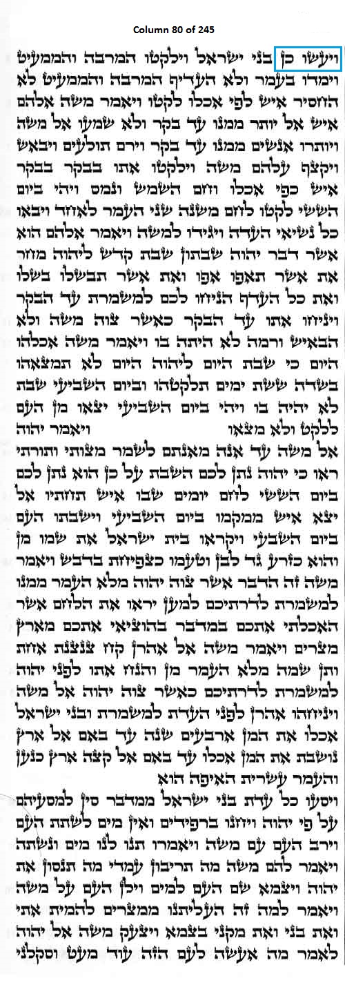 Column 80 of the Torah Scroll begins with the following distinct Line 1 Keywords; this is the only column in the entire Scroll that begins with these keywords: