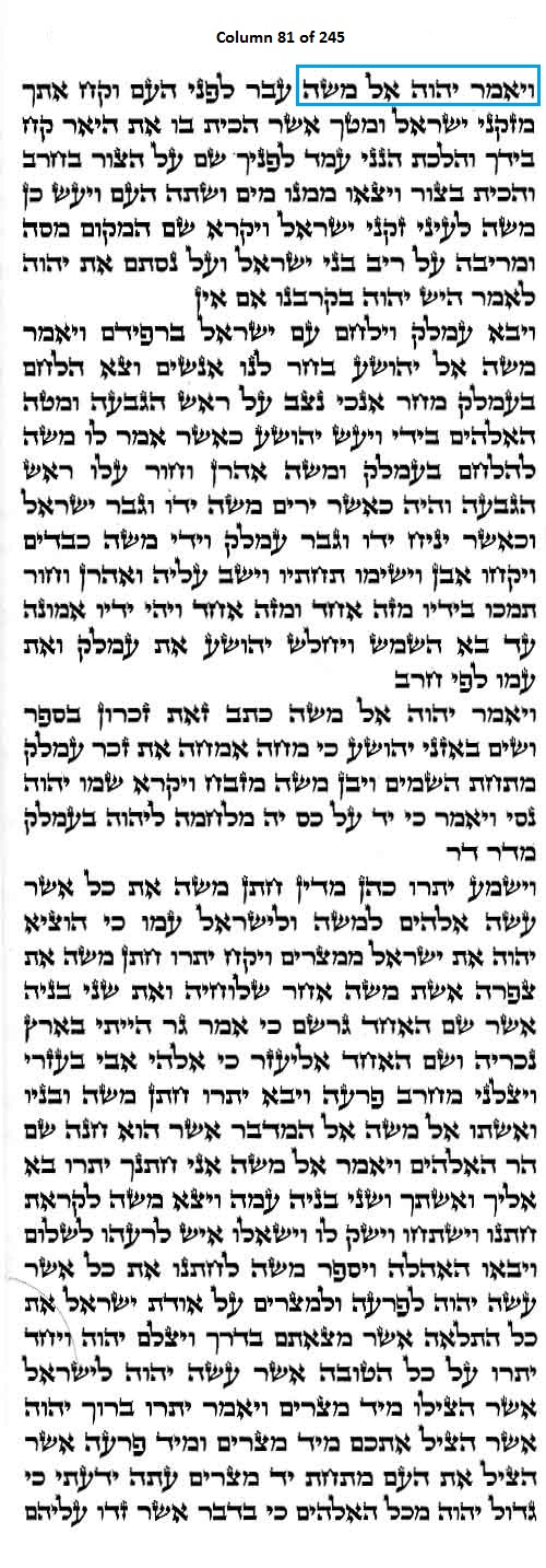 Column 81 of the Torah Scroll begins with the following distinct Line 1 Keywords; this is the only column in the entire Scroll that begins with these keywords: