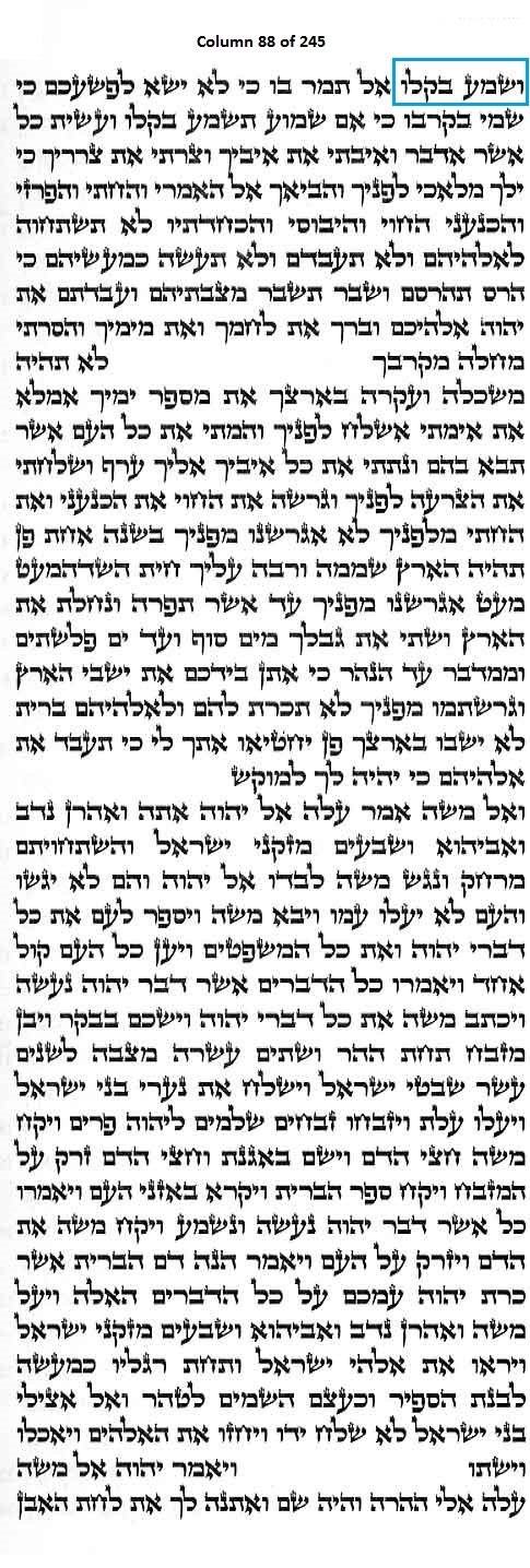 Column 88 of the Torah Scroll begins with the following distinct Line 1 Keywords; this is the only column in the entire Scroll that begins with these keywords: