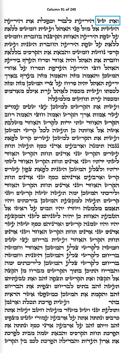 Column 91 of the Torah Scroll begins with the following distinct Line 1 Keywords; this is the only column in the entire Scroll that begins with these keywords: