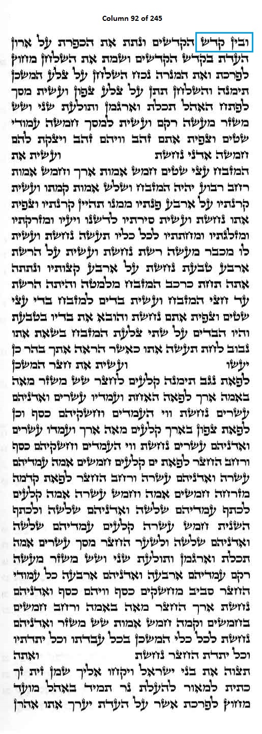 Column 92 of the Torah Scroll begins with the following distinct Line 1 Keywords; this is the only column in the entire Scroll that begins with these keywords: