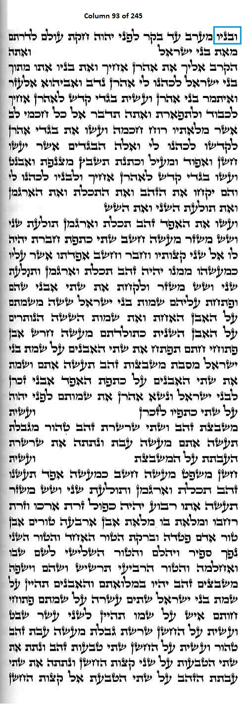 Column 93 of the Torah Scroll begins with the following distinct Line 1 Keyword; this is the only column in the entire Scroll that begins with this keyword: