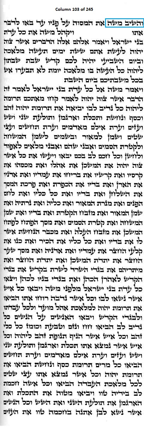 Column 103 of the Torah Scroll begins with the following distinct Line 1 Keyword; this is the only column in the entire Scroll that begins with this keyword: