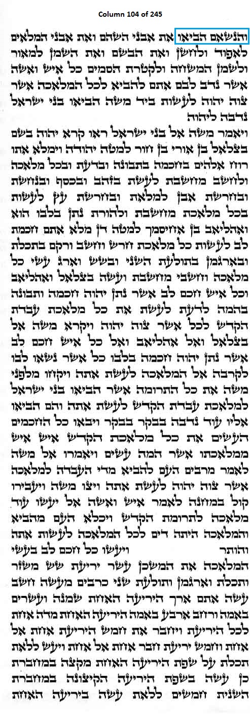 Column 104 of the Torah Scroll begins with the following distinct Line 1 Keywords; this is the only column in the entire Scroll that begins with these keywords:
