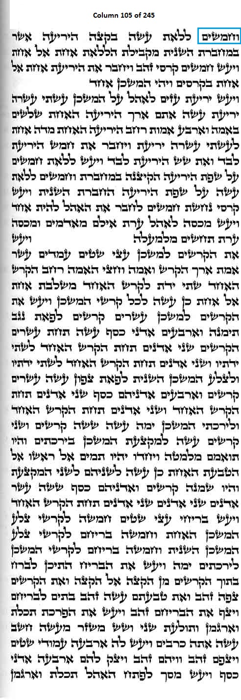 Column 105 of the Torah Scroll begins with the following distinct Line 1 Keyword; this is the only column in the entire Scroll that begins with this keyword: