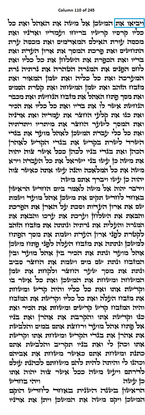 Column 110 of the Torah Scroll begins with the following distinct Line 1 Keywords; this is the only column in the entire Scroll that begins with these keywords: