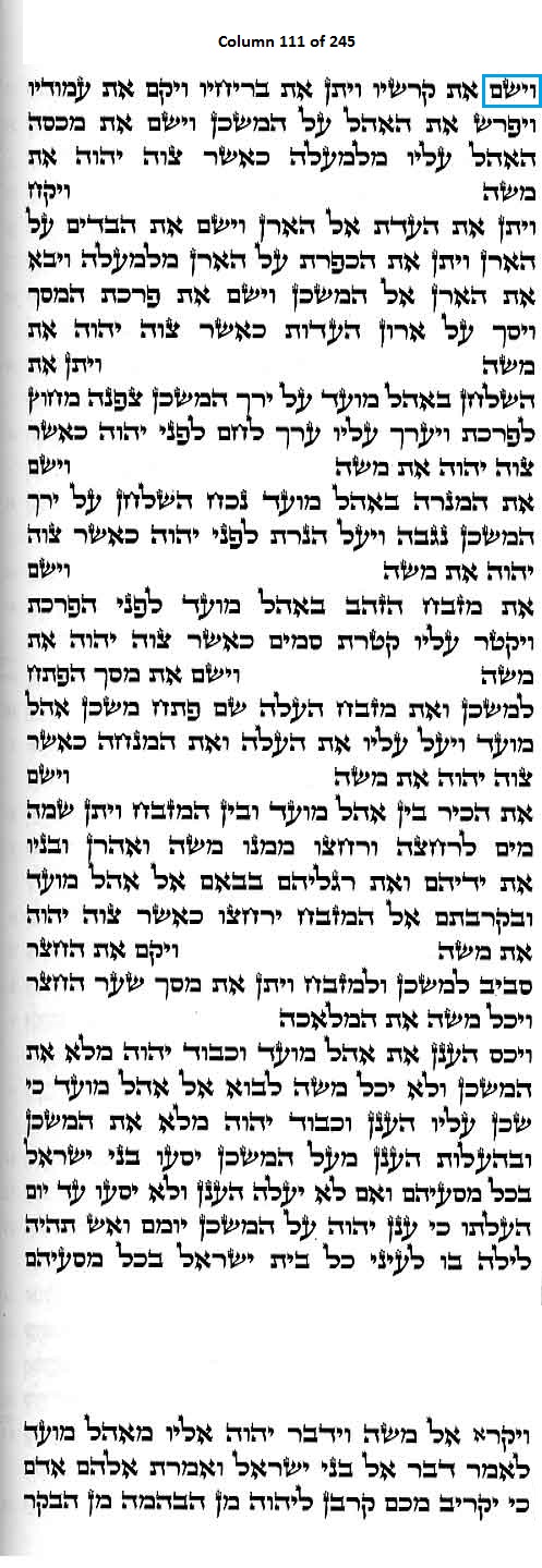 Column 111 of the Torah Scroll begins with the following distinct Line 1 Keyword; this is the only column in the entire Scroll that begins with this keyword: