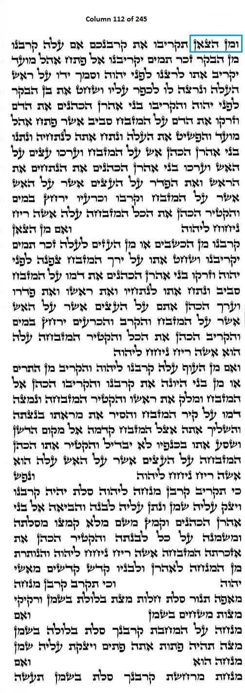 Column 112 of the Torah Scroll begins with the following distinct Line 1 Keywords; this is the only column in the entire Scroll that begins with these keywords: