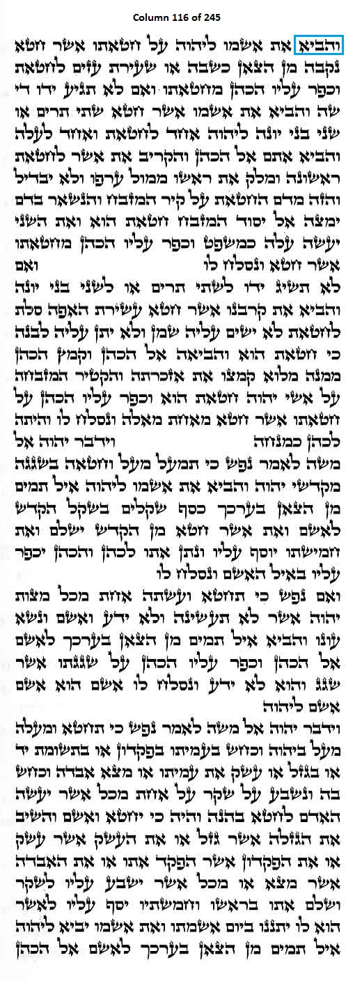 Column 116 of the Torah Scroll begins with the following distinct Line 1 Keyword; this is the only column in the entire Scroll that begins with this keyword: