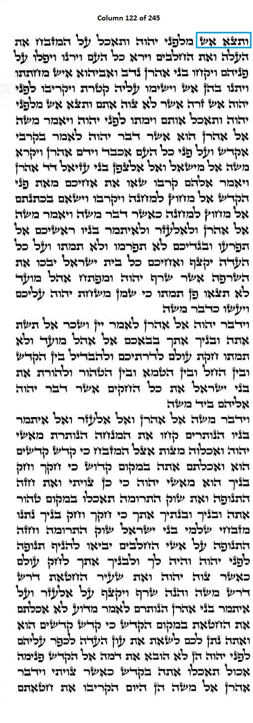 Column 122 of the Torah Scroll begins with the following distinct Line 1 Keywords; this is the only column in the entire Scroll that begins with these keywords: