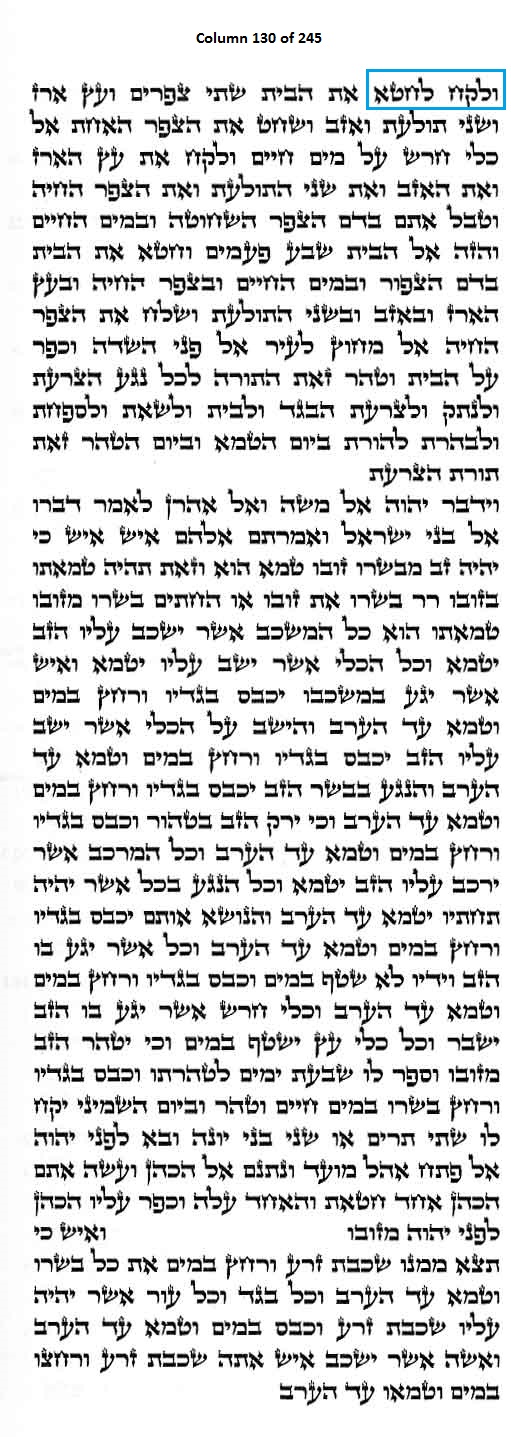 Column 130 of the Torah Scroll begins with the following distinct Line 1 Keywords; this is the only column in the entire Scroll that begins with these keywords: