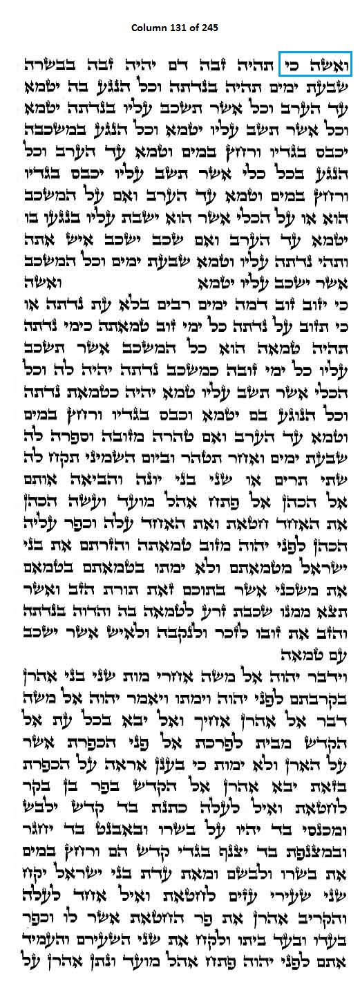 Column 131 of the Torah Scroll begins with the following distinct Line 1 Keywords; this is the only column in the entire Scroll that begins with these keywords:
