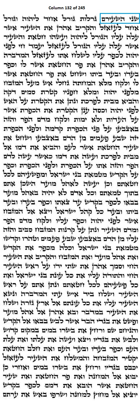Column Contents include readings from Leviticus for Parsha Acharei Mot: