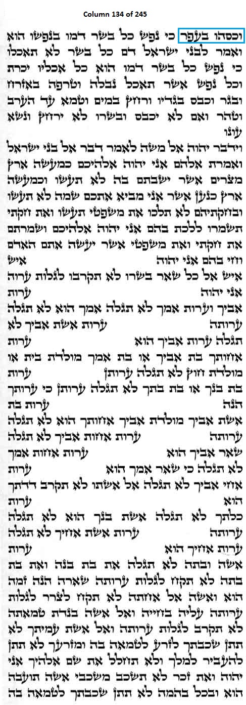 Column 134 of the Torah Scroll begins with the following distinct Line 1 Keywords; this is the only column in the entire Scroll that begins with these keywords: