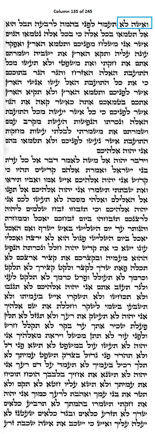 Column 135 of the Torah Scroll begins with the following distinct Line 1 Keyword2; this is the only column in the entire Scroll that begins with these keywords: