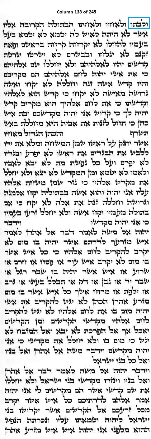 Column 138 of the Torah Scroll begins with the following distinct Line 1 Keyword; this is the only column in the entire Scroll that begins with this keyword: