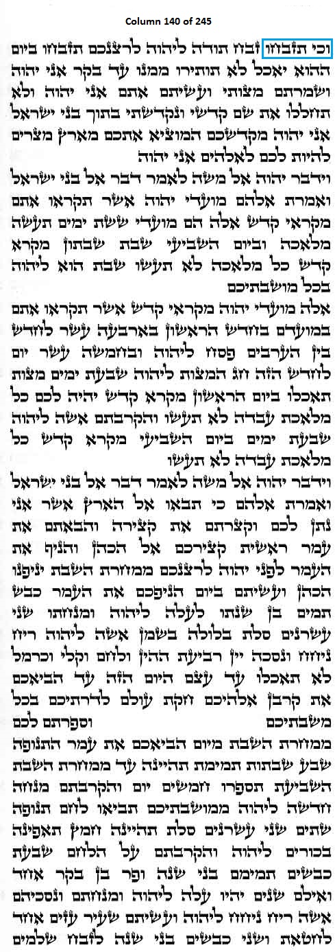 Column 140 of the Torah Scroll begins with the following distinct Line 1 Keywords; this is the only column in the entire Scroll that begins with these keywords: