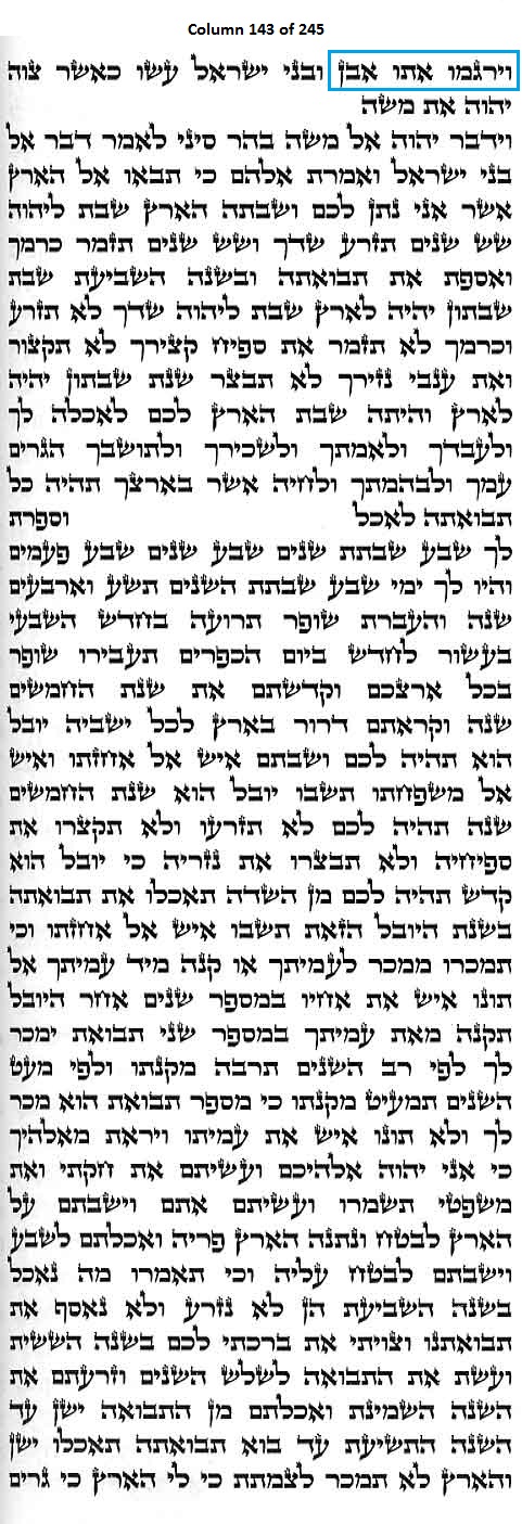 Column 143 of the Torah Scroll begins with the following distinct Line 1 Keywords; this is the only column in the entire Scroll that begins with these keywords: