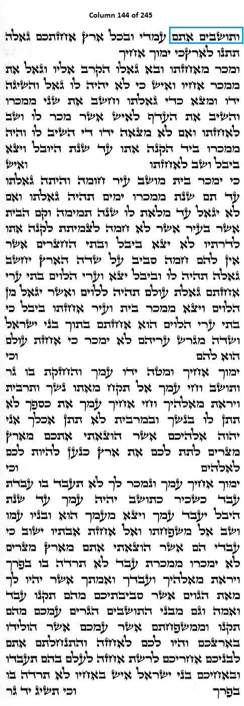 Column 144 of the Torah Scroll begins with the following distinct Line 1 Keywords; this is the only column in the entire Scroll that begins with these keywords:
