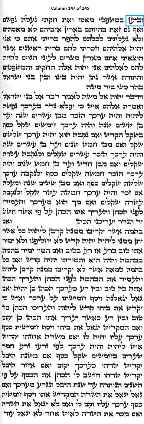 Column 147 of the Torah Scroll begins with the following distinct Line 1 Keyword; this is the only column in the entire Scroll that begins with this keyword: