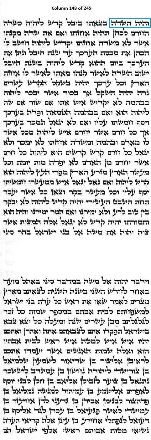 Column 148 of the Torah Scroll begins with the following distinct Line 1 Keywords; this is the only column in the entire Scroll that begins with these keywords: