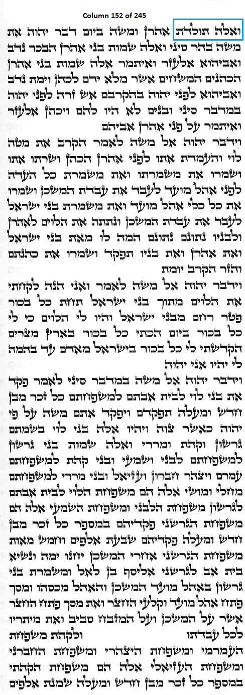 Column 152 of the Torah Scroll begins with the following distinct Line 1 Keywords; this is the only column in the entire Scroll that begins with these keywords: